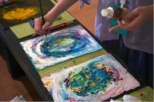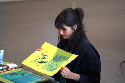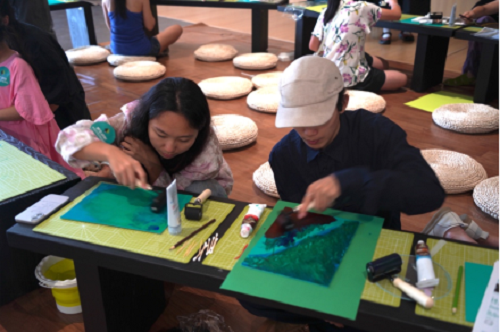 英国绘画艺术家杰德·加斯金指导大师利用塑料板、木刻刀及随手拾取的树叶、树枝、石块进行拓印创做。无需专业技巧,沉正在过程中的表达。每一次按压都可能生成意想不到的纹理,正如情感的流动无法被完全预设。