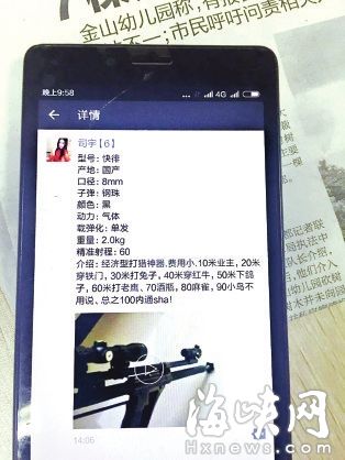 据网坐动静,全国机关冲击收集贩枪犯罪专案步履带动摆设电视电线日召开,按照摆设,全国机关本日起开展冲击收集贩枪犯罪专案步履。此中,收集贩枪犯罪凸起的互联网坐、论坛、QQ群等收集平台、公司,是此次专案步履的沉点。近期,海都95060热线也接到不少市平易近关于微商“卖枪”的线索,记者对此进行了暗访。